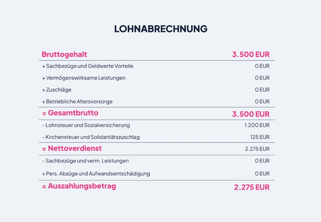 Wenn Sie bis hierhin aufmerksam gelesen haben, dann wissen Sie jetzt ganz genau, welche Grundlagen bei der Entgeltabrechnung eine Rolle spielen und dass es für uns höchste Priorität hat, diese für Sie aktiv zu managen. Damit wir ausgehend vom Bruttogehalt schließlich zum tatsächlichen Nettogehalt gelangen, werden einerseits Arbeits-, Fehl- und Urlaubszeiten nachvollzogen und die individuellen Merkmale für die Berechnung von Lohnsteuer und Sozialbeiträgen berücksichtigt. Ausgehend von der Annahme, dass alle Zeiten erfasst sind, berücksichtigen wir bei der Entgeltabrechnung folgende Faktoren: